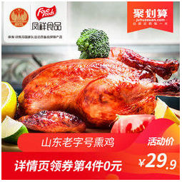 山东老字号 凤祥 五更炉熏鸡 500g*2袋 39.8元