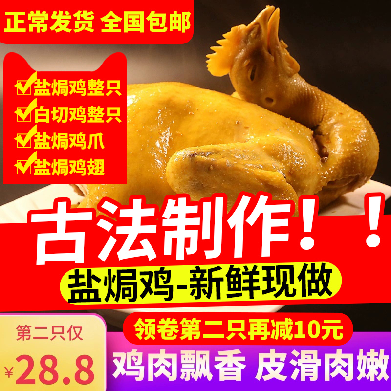 盐焗鸡850g熟食广东梅州正宗客家特产整只真空烧鸡扒鸡白切鸡斩鸡 26.9元
