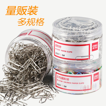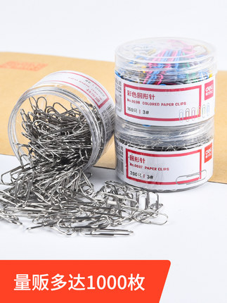 得力回形针办公用品别针曲别针固定衣服彩色回形针书签创意可爱文具大号回型针1000枚回行针夹子回旋针包邮 3.90元