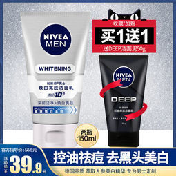 白菜价:妮维雅 男士水活畅透精华洁面液 150ml + 焕白亮肤洁面乳 50ml 19.9元包邮(需用券)