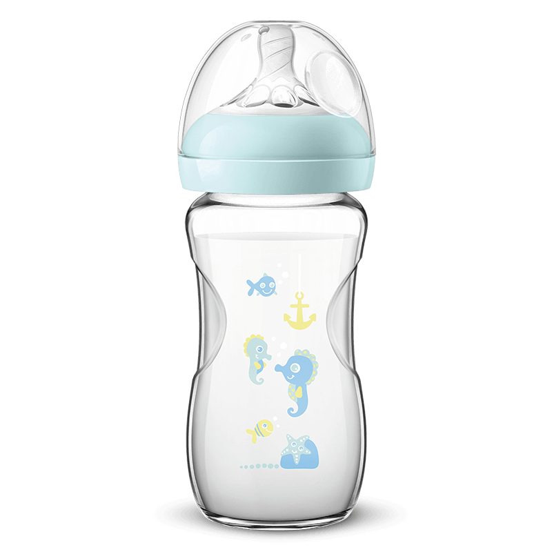 飞利浦新安怡 奶瓶 玻璃奶瓶 婴儿仿母乳硅橡胶奶嘴宽口径240ml 自带1月+奶嘴SCF577/01蓝色海马