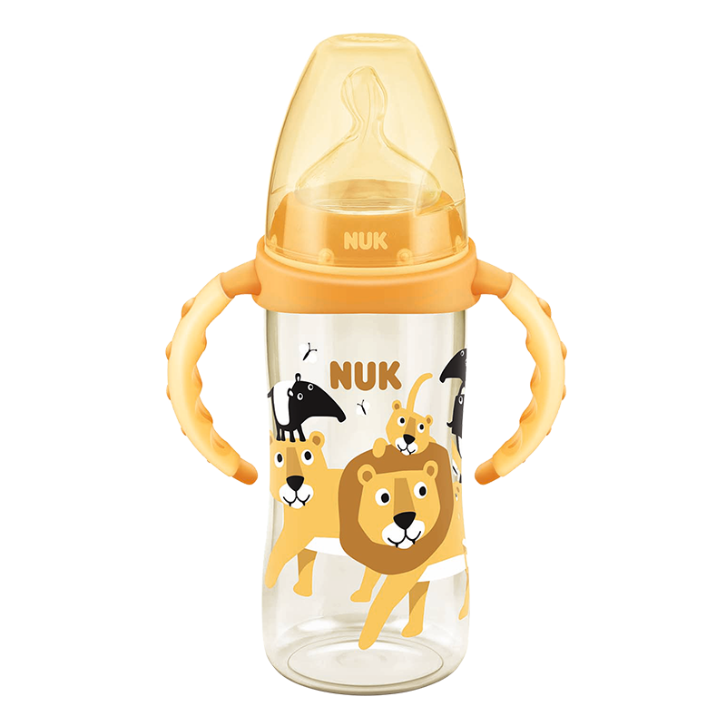 NUK宽口PPSU奶瓶新生婴儿带手柄中圆孔硅胶6-18个月300ML狮子款进口