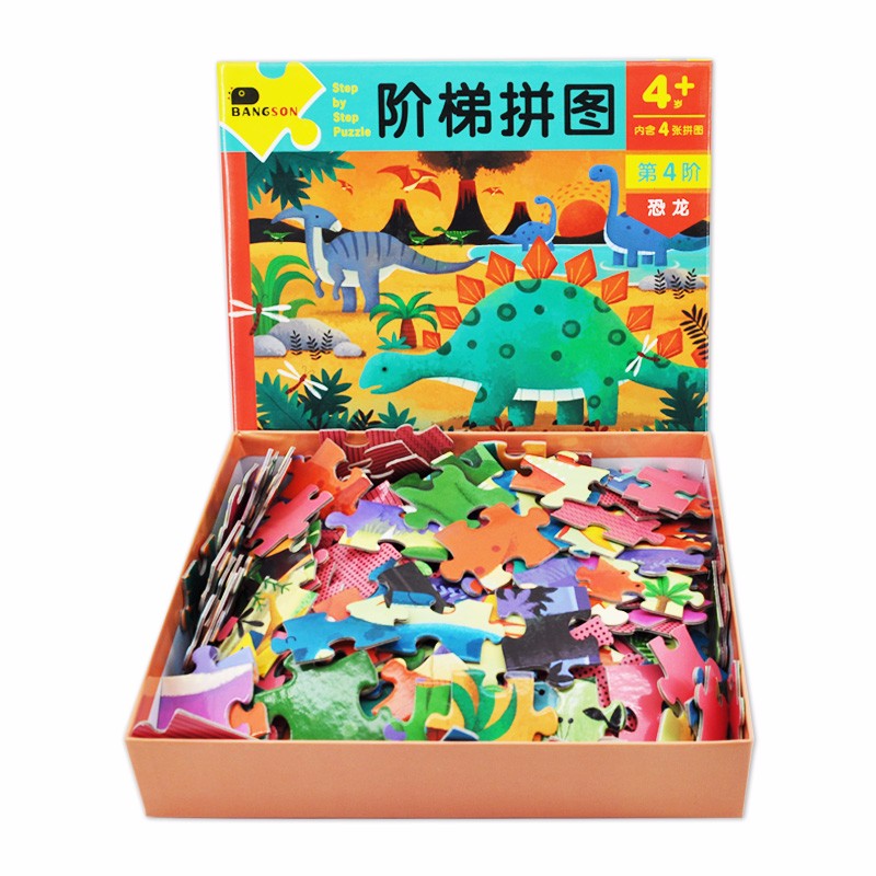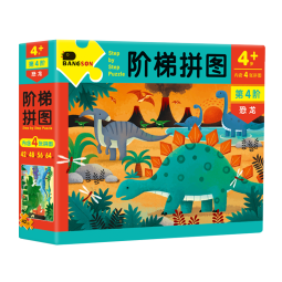 BANGSON 宝宝阶梯拼图1-5岁儿童男孩玩具女孩生日礼物拼图进阶逻辑思维玩具 【内含4张】 4阶-恐龙