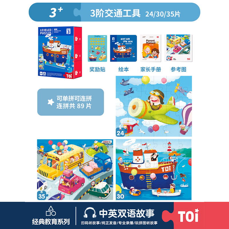 TOI进阶教育拼图玩具幼儿早教大块纸质拼图男孩玩具女孩儿童生日礼物3-4-5-6岁宝宝 3阶交通
