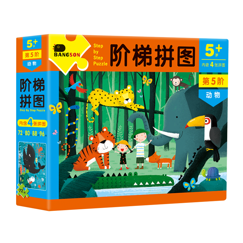 BANGSON 宝宝阶梯拼图1-5岁儿童男孩玩具女孩生日礼物拼图进阶逻辑思维玩具 【内含4张】 5阶-动物