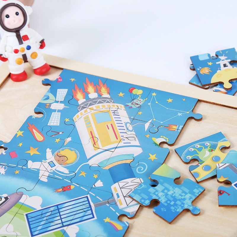【六一儿童节礼物】魔法艾拉教育拼图儿童幼儿早教木质拼图男孩玩具女孩幼儿园小学生玩具生日礼物 【宇宙探索48片】(适合1-6岁宝宝)【有收纳袋】