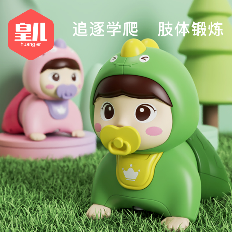 婴儿学爬玩具宝宝引导练习0-6-9-12个月抬头训练神器电动爬行娃娃2 【绿】恐龙萌趣爬娃 .