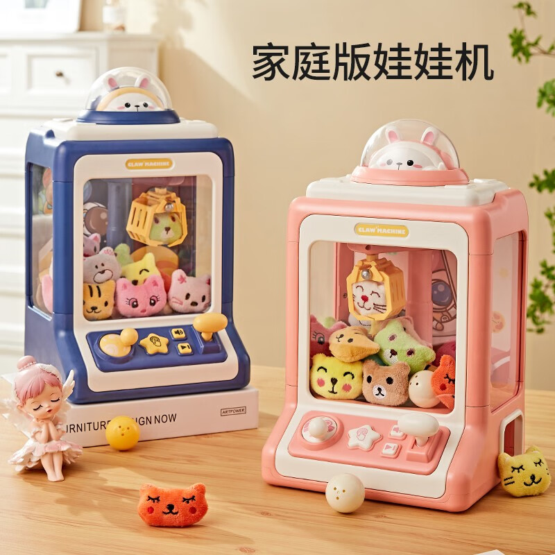 智贝思(ZHIBEISI)大型女童抓娃娃机夹公仔机小型投币家用女孩儿童玩具吊扭蛋机游戏生日礼物玩具 粉色豪华加大版【10娃娃+10扭蛋+14币】