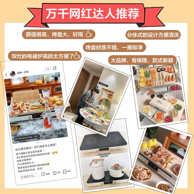 荣事达畅嗨盘 聚嗨烤盘 网红锅 多功能烤盘 家用烤肉盘 IH双灶烤肉 分区控温21-CS02A