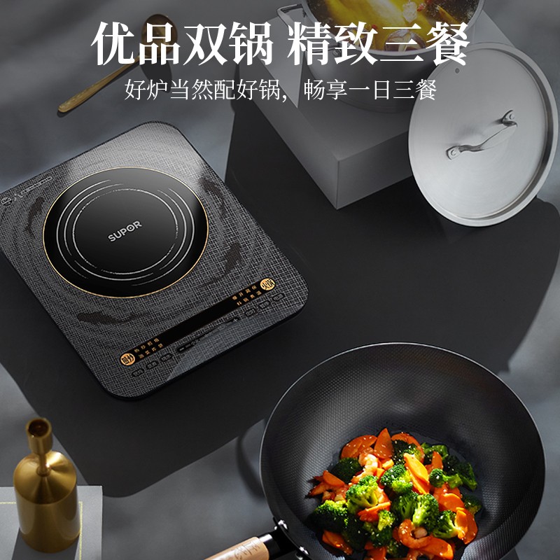 苏泊尔(SUPOR)秘镜系列 家用电磁炉 低辐射 2200W大功率 支持定时多功能电磁炉套装 C22-IH73E