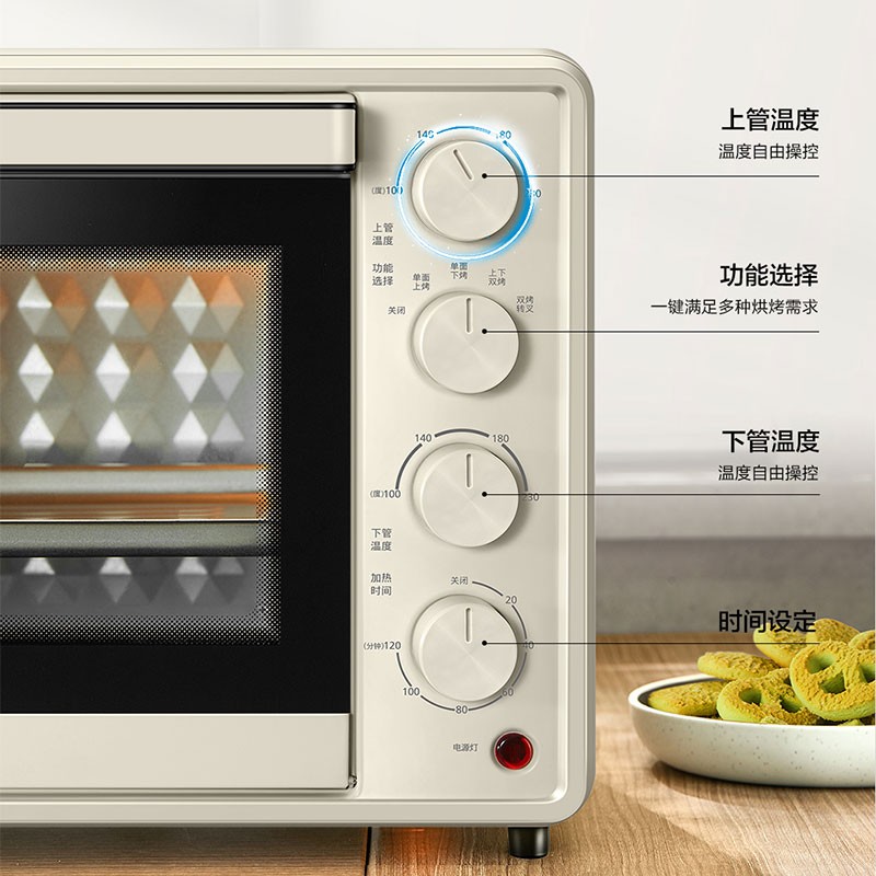 Bear 小熊 DKX-F40A5 电烤箱 40L,扩容内胆设计,一次容纳更多食材,4种发热模式,上下管独立控温,360°旋转烤叉,还原窑烧般焦嫩多汁,内外双层门夹设计,稳固保护钢化玻璃,配合2档铰门开合,安全稳固不易裂 阅读全文 -