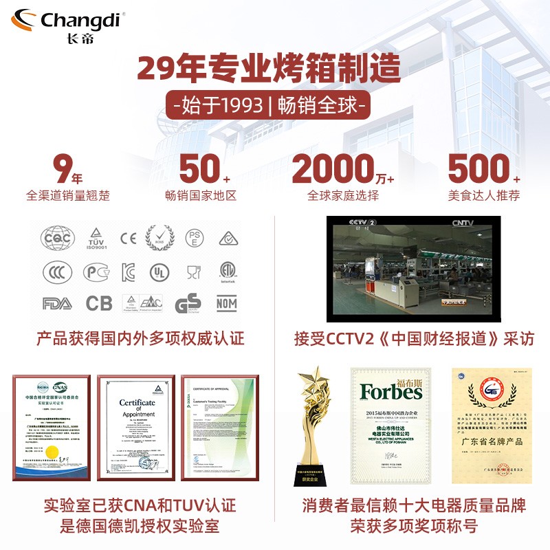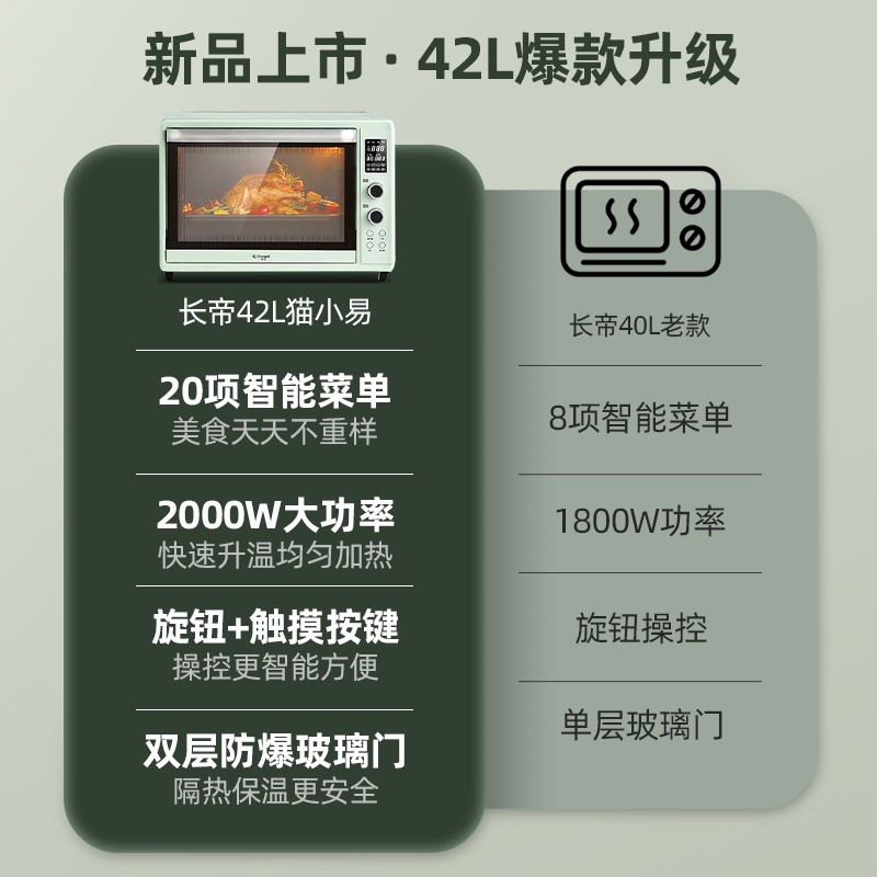 长帝(changdi)家用多功能电烤箱42升大容量 独立控温 搪瓷内胆智能菜单热风循环旋转烤叉 猫小易