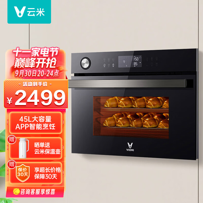 云米嵌入式蒸烤一体机,尺寸597*453*523mm,45L大容量,4层可调层架,440mm内腔,APP智能烹饪,360°热风循环,±1℃精准调温,35℃-230℃广域控温,可常温发酵、快速解冻、高温蒸烤,两色可选。 阅读全文