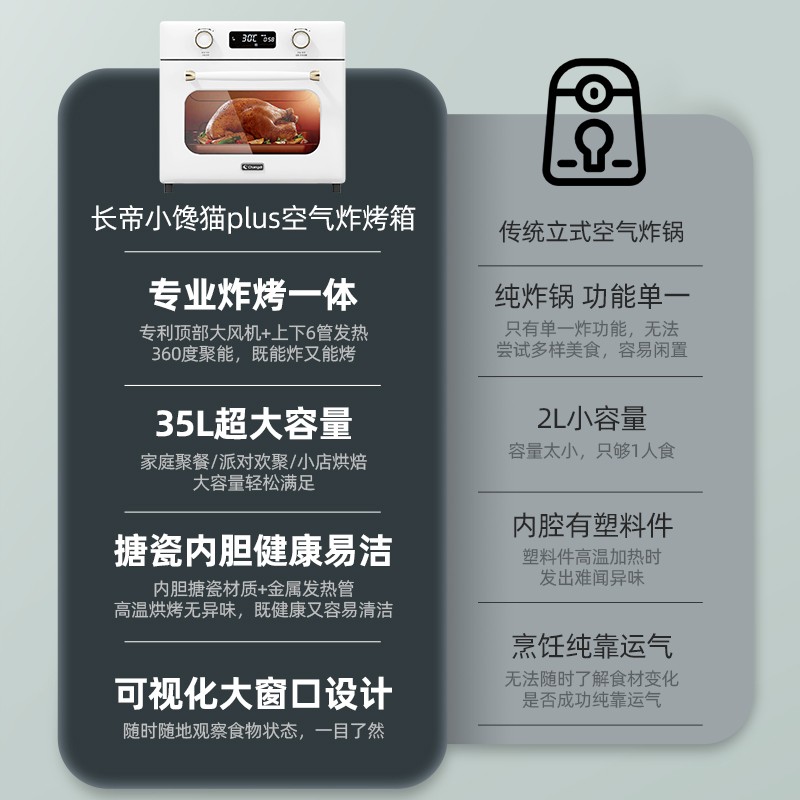 长帝(changdi)家用空气炸锅烤箱 35升大容量 电子精准控温 双层防爆门 智能菜单小馋猫plus