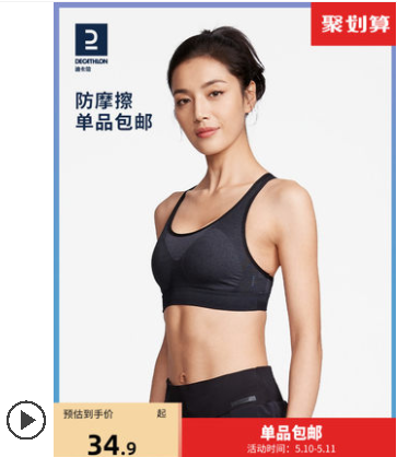 迪卡侬运动内衣女春跑步健身瑜伽防下垂薄款防震美背文胸背心WSCU 聚划算 34.90元!