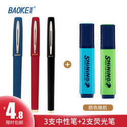 BAOKE 宝克 PC1828 大容量中性笔 3支 (黑红蓝各1支) 送2支荧光笔 4.8元
