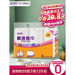 五月花 厨房用纸3层 120张*3卷 9.99元包邮(双重优惠)