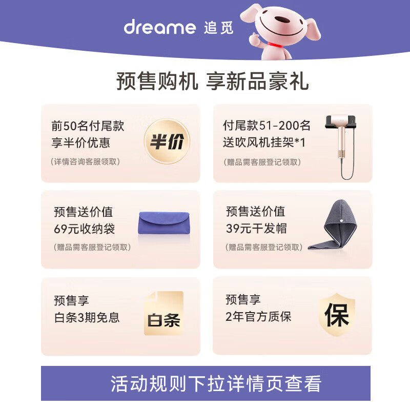 追觅高速Pro吹风机拥有8大优势: 【快速干发】13万转高速马达,3分钟可快速干发 【不干燥】每秒100次实时检测校正出风口温度,头皮不干燥,焕发头发亮泽 【更顺滑】2亿浓度负离子让秀发又蓬松又顺滑 【更清爽】冷热风循环快速定型,维持水油平衡,让头发更清爽 【噪音小】 上百次降噪优化设计,让干发更舒心 【不劳累】垂直置位式马达结构刷设计,握持平衡不劳累 【更多干发模式】4档风温、2档风力,1个风嘴,16种干发模式,任您百变造型 【更安全】双层风嘴久用不烫手,滤网下沉式设计防止发丝吸入,内置EMC电磁兼容模组壳抑制电磁辐射,更有过热保护呵护您的安全哦~ 阅读全文 -