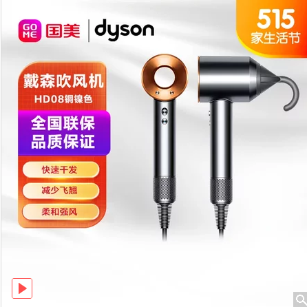戴森(Dyson) 新一代吹风机 电吹风 负离子 进口家用 礼物推荐 HD08 铜金镍色 515家生活节