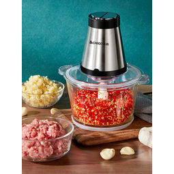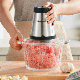 款志高 小型电动搅碎器,功率是300W,使用双层4叶不锈钢刀片,立体S型设计,能均匀切割搅碎。厚实的玻璃碗体,容量是2斤。拥有快、慢双档转速调节,适合不同食材。 慢档-搅碎较软食材,辣椒、蒜头、水果、蔬菜。 快档-搅碎较硬食材,肉类、萝卜、薯类、坚果。 大功率,搭配四叶不锈钢刀头,6秒碎食,可绞肉、碎菜、做辅食等,加厚玻璃碗,快慢2档,告别传统剁肉方式,省心省力,远离细菌,家庭实用必备~