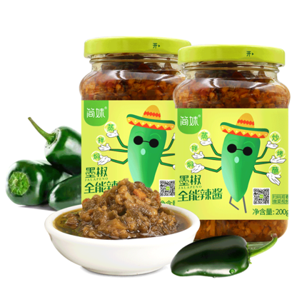 简妹!墨椒全能辣椒酱200g*2瓶 9.9元