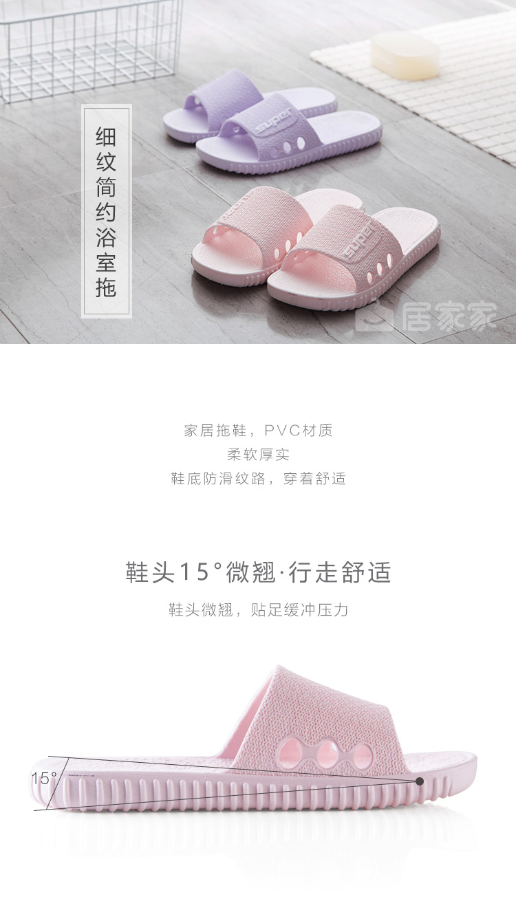 居家家日式室内软底拖鞋浴室洗澡防滑情侣凉拖鞋女夏季男士家居鞋 6.90元