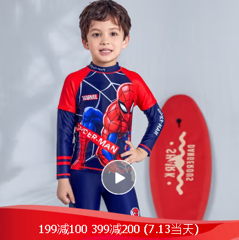 迪士尼 DISNEY 儿童泳衣男孩炫酷蜘蛛侠中大童速干分体式套装长袖游泳衣SW211341 红色 130 满788减300 满388减160 满188减80
