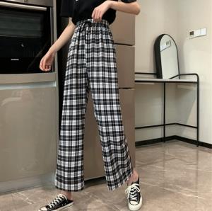 黑白格子阔腿裤女夏季宽松垂感高腰薄款拖地裤直筒休闲裤长裤mx 29.9元