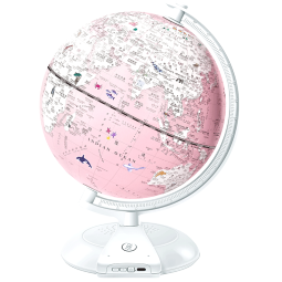 北斗AR地球仪20cm双子座公主粉木质底座充电夜灯 3D立体互动 插画早教机智能语音玩具 男孩女孩儿童生日礼物