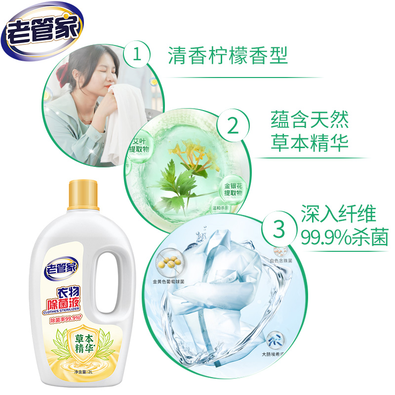 老管家衣物除菌液消毒水洗衣机用杀菌除螨婴儿内衣内裤家用洗衣服 2L