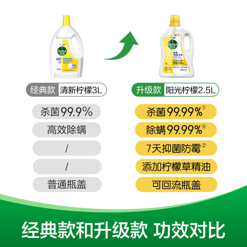 滴露Dettol多效衣物消毒液阳光柠檬2.5L【肖战同款】全新升级99.99%除菌除螨 内衣内裤一起洗