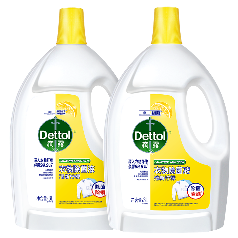 【肖战同款】滴露衣物消毒液柠檬除菌液 高效杀菌真菌除螨去味内衣裤 儿童家用洗衣服液柔顺剂清洁适用 【店长推荐】 柠檬3L*2大瓶