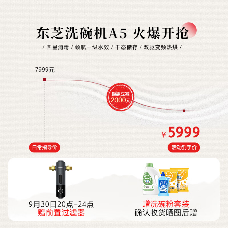 东芝(TOSHIBA)15套 洗碗机嵌入式 独嵌两用 家用全自动 四星消毒 超一级水效 分层洗 变频热风烘干 洗碗机A5