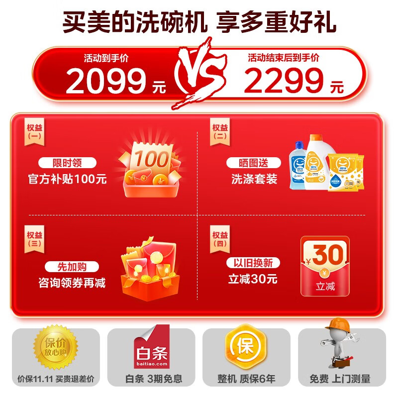 美的(Midea)14套大容量 嵌入式洗碗机 银离子净味 专利级热风烘干 智能家电 独立式 家用全自动刷碗机JV13