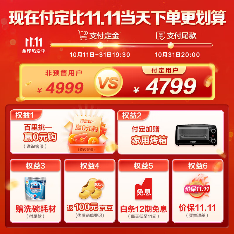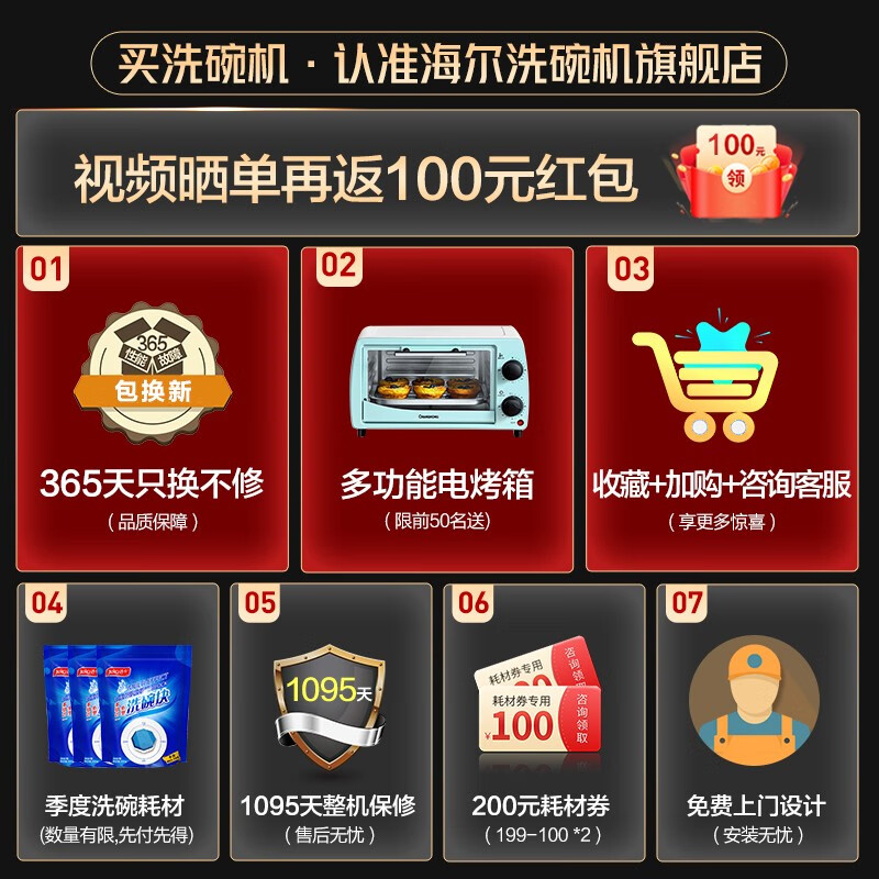 海尔(Haier)13套大容量嵌入式洗碗机 京东小家智能 三驱动力分区精洗开门速干 晶彩经典版EYW131286BKDU1