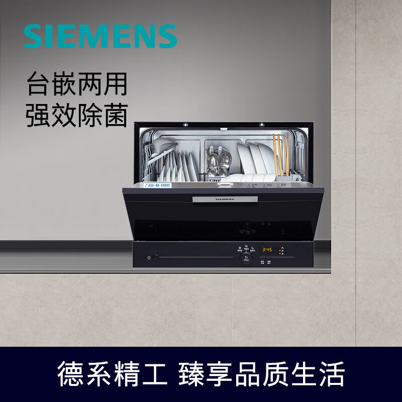 西门子(SIEMENS)全自动家用洗碗机嵌入式台式 易安装 高温除菌 加强烘干 原装进口 黑色5套 SK23E610TI
