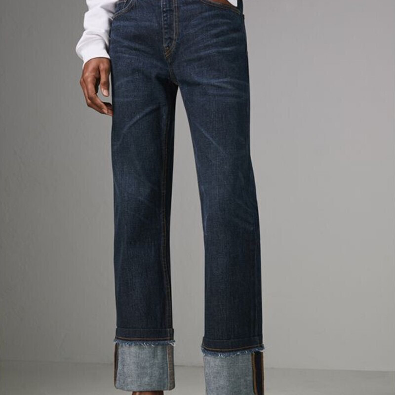 博柏利 BURBERRY 男士深靛蓝休闲剪裁大理石纹水洗牛仔裤 80013801 32