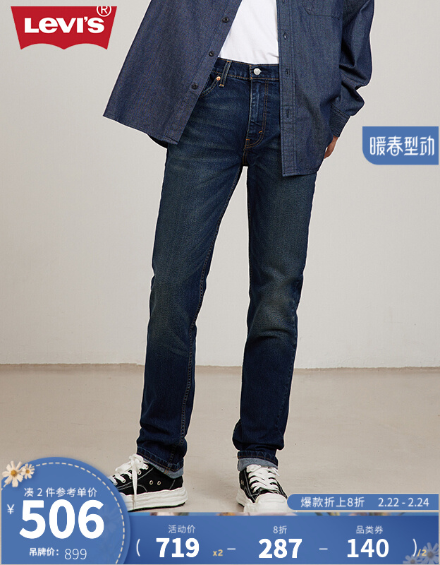 【预售】Levi's李维斯512修身锥形男士牛仔长裤水洗蓝22秋冬款潮牌男款易穿搭 蓝色 32/32