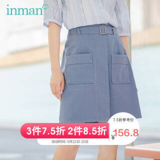 茵曼2020夏装新款棉质半身短裙高腰配腰带纯色A字工装休闲风遮肉 蓝灰色 M *3件 440.25元
