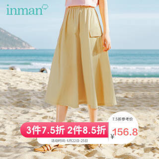 茵曼2020夏装新款复古松紧腰工装风简约棉质遮肉卡其伞裙半身中裙 卡其色 XL *3件 470.25元