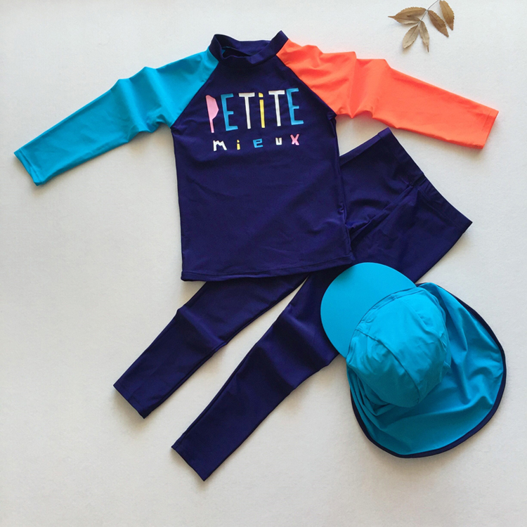 出口日本儿童泳衣男童长袖防晒宝宝分体潜水服男童带帽子温泉泳装 85.00元