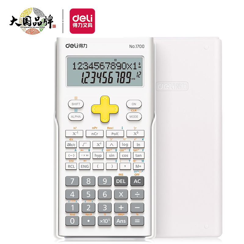得力(deli)时尚款函数计算器 双行LCD大屏显示 240种功能考试计算机(适用于初高中生) 白色1700