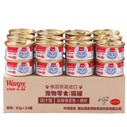 顽皮(Wanpy)泰国进口 猫罐头85g*24罐 白身吞拿鱼+明虾罐头(汤汁型) 成猫零食