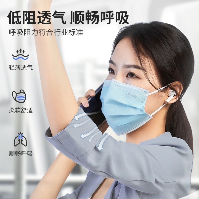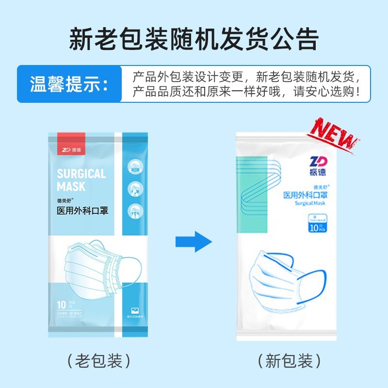 振德(ZHENDE)成人一次性医用外科口罩三层熔喷布轻薄透气 外科口罩非灭菌100只【10只/袋*10】