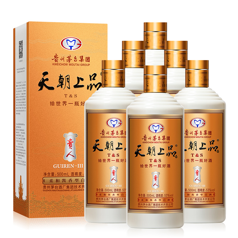 贵州茅台集团天朝上品 贵人三代 柔和酱香型白酒 53度 500ml*6瓶 整箱装(中秋节送礼礼物)