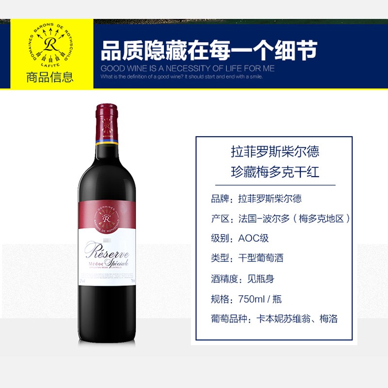 法国 拉菲(LAFITE)罗斯柴尔德 珍藏梅多克红葡萄酒 750ml*6瓶 整箱装