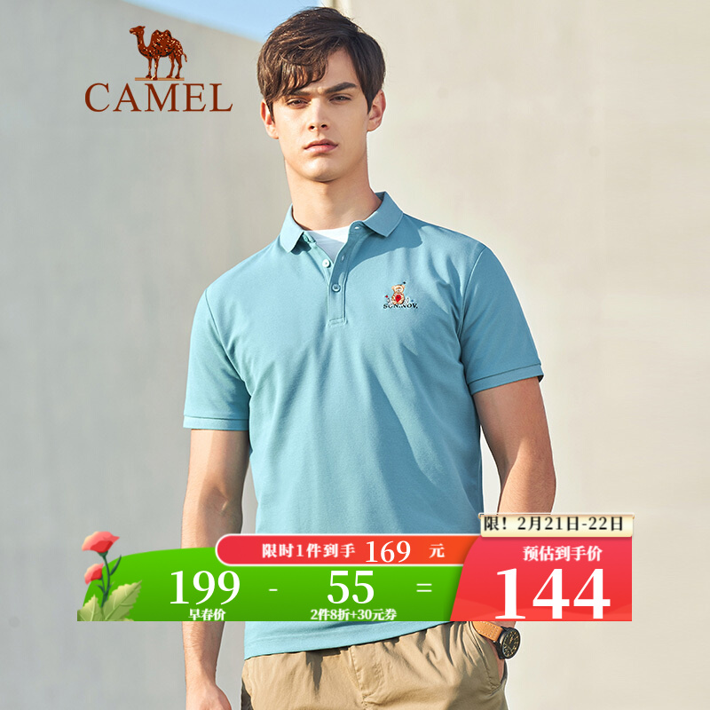 骆驼(CAMEL)男装 夏季韩版翻领刺绣短袖男士商务休闲Polo衫潮轻商务 湖蓝 L