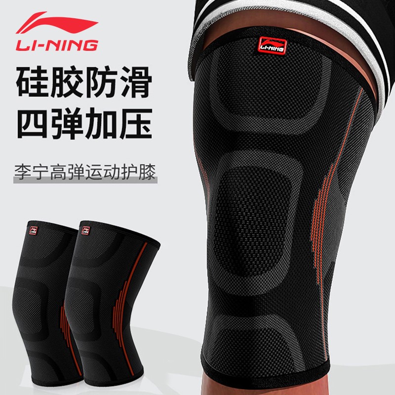 李宁护膝保暖运动男女跑步篮球护膝【一对装】户外骑行护膝中老年人护膝盖关节护腿半月板髌骨防护运动护具 升级颗粒防滑黑色922-1 XL码(适合150~200斤)