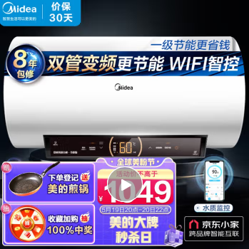 美的(Midea)电热水器60升一级变频速热大水量健康洗无缝内胆WIFI智控京东小家智能生态F6021-JA1(HEY) 【家电中意礼遇季,超级秒杀,19日20点-20日22点到手价1049,下单登记送美的煎锅】