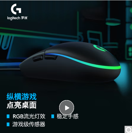 罗技(G)G102 游戏鼠标 黑色 RGB鼠标 吃鸡鼠标 绝地求生 轻量化设计 200-8000DPI G102第二代